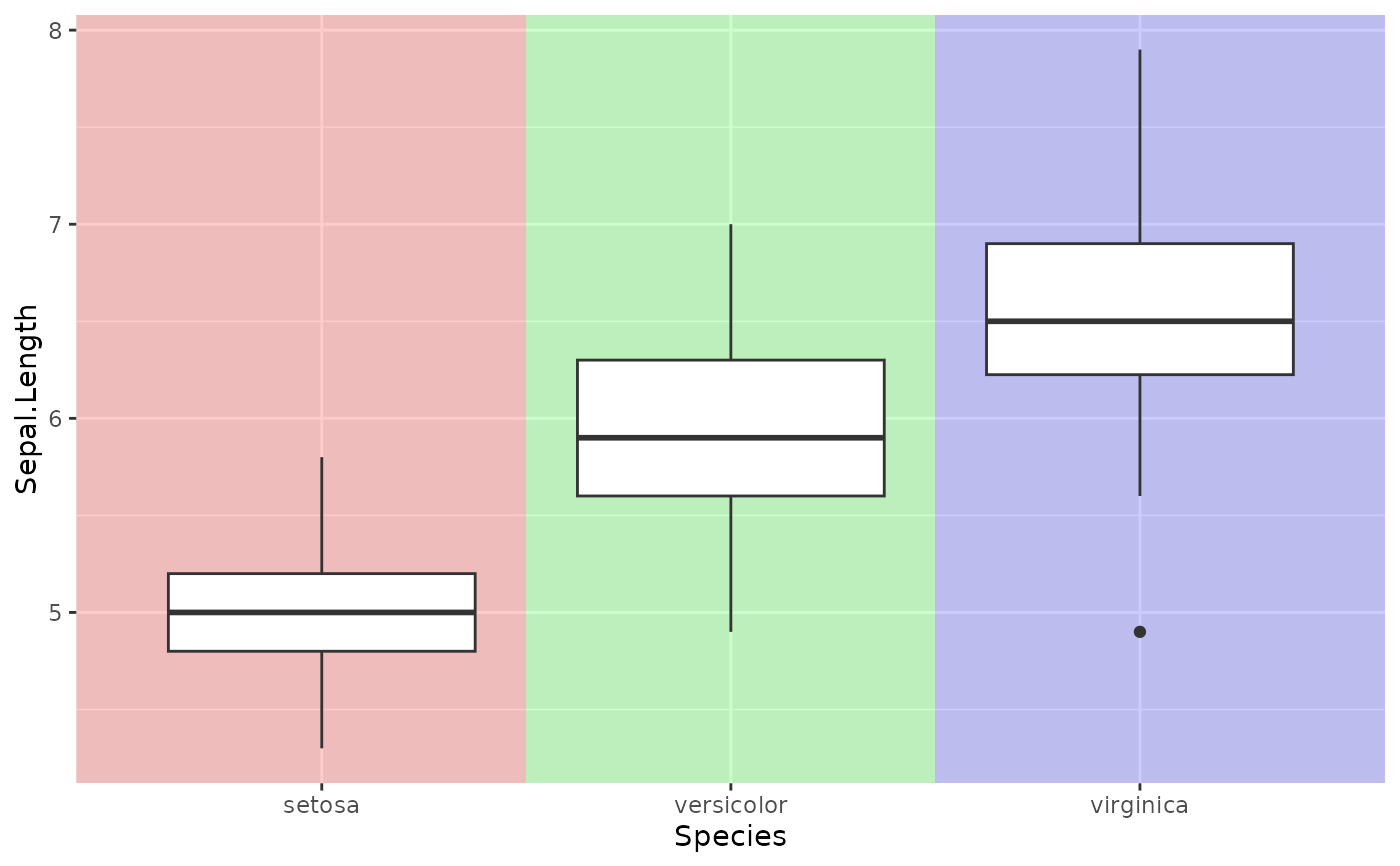 Inserts shaded rectangles behind the data layer, one per level of the categorical axis variable.