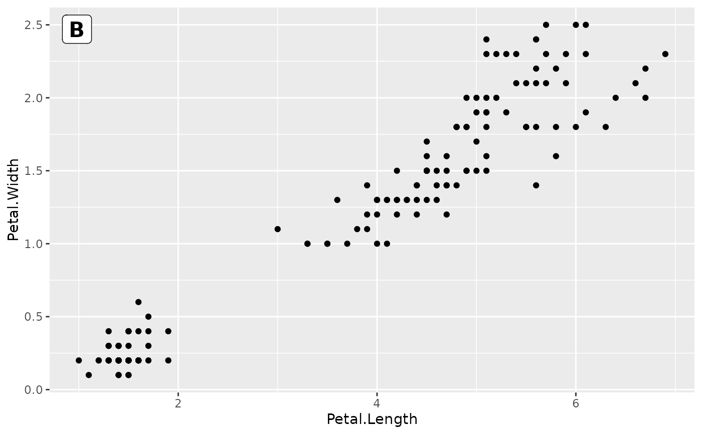 Add text labels (e.g. A, B, C) to the corner of each plot panel using [ggpp::annotate()] with NPC coordinates.
