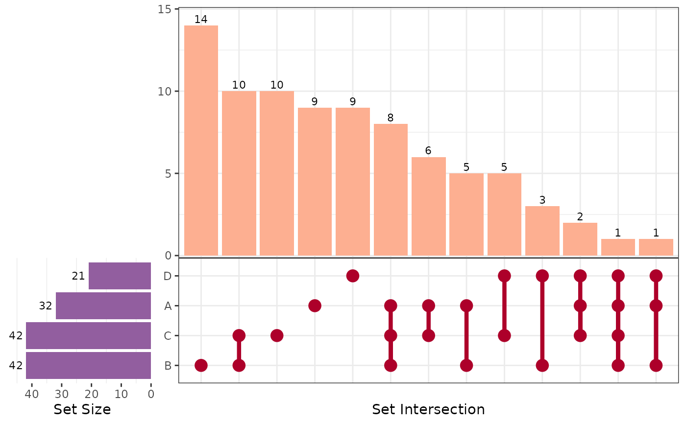 plt_upset(df, vars = c("A","B","C","D"), output = "upset")