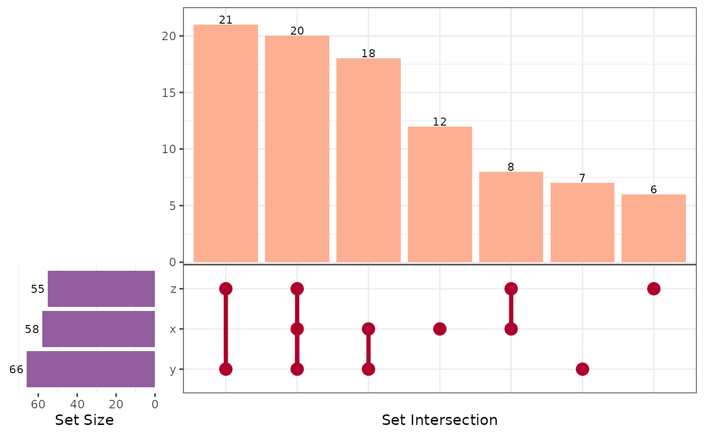 plt_upset(df2, vars = c("x","y","z"), levels = c("1"))